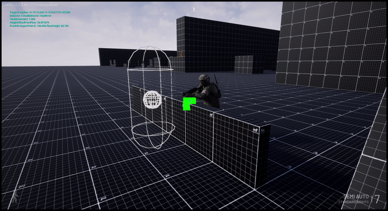 As you can see demonstrated above, it is now possible to vault over obstacles, as well as climb up onto things. In addition, it is possible to initiate these maneuvers from a sprint, which will actually change the speed and distance traveled, however, this is not fully implemented just yet. Mantling is also not currently implemented as we do not have animations made for it, however, it will be utilizing the same framework and A2P75 concepts, so that is something that we will be adding relatively soon as well.