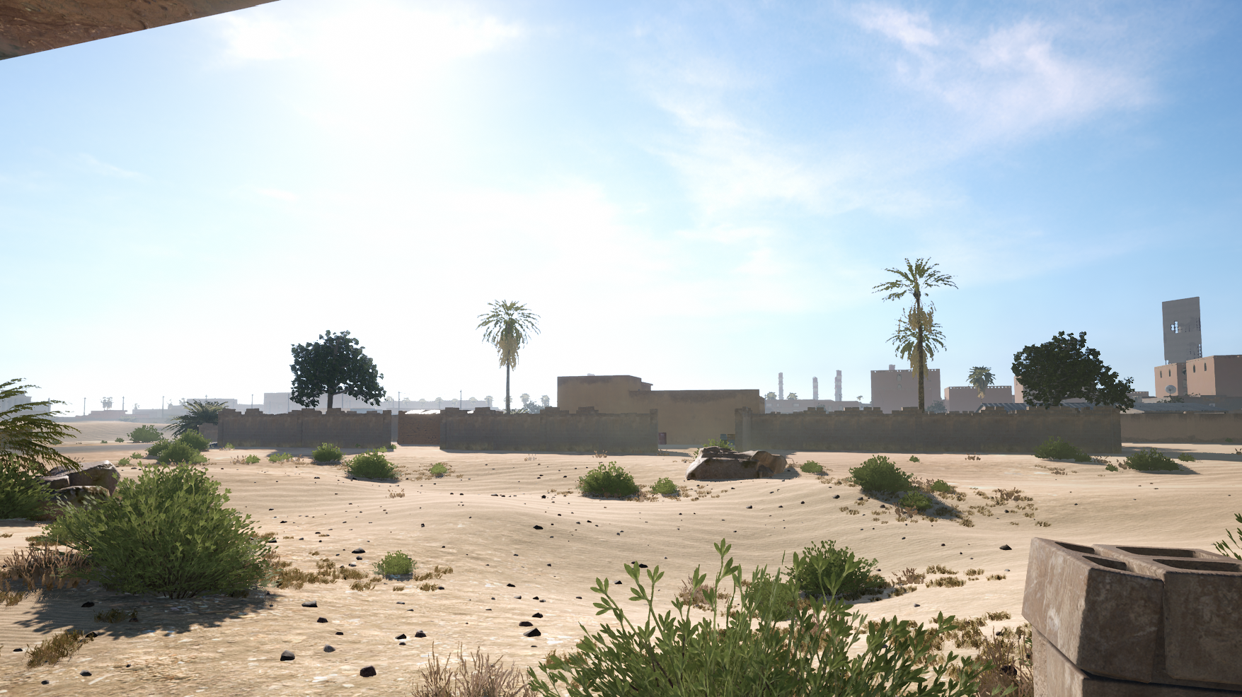 Some foliage detailing and walls were added to Khafji, and a new clear sunny lighting preset was added in addition to other general lighting improvements: