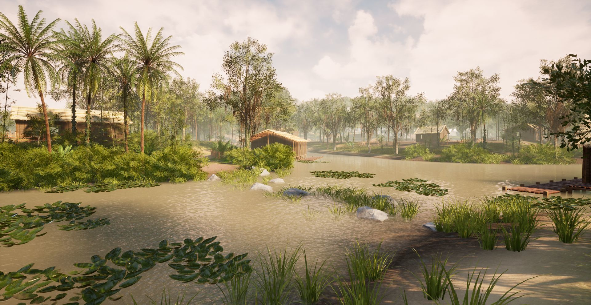 In April, a significant amount of work was put into the Lam Dong terrain that is being made for the Rolling Stone expansion. Last month, we showed off Lam Dong while it was still in a very early blockout phase where the level design team was just starting to flesh out the environment assets, and place some of the building assets. Just a month later, here is the progress: