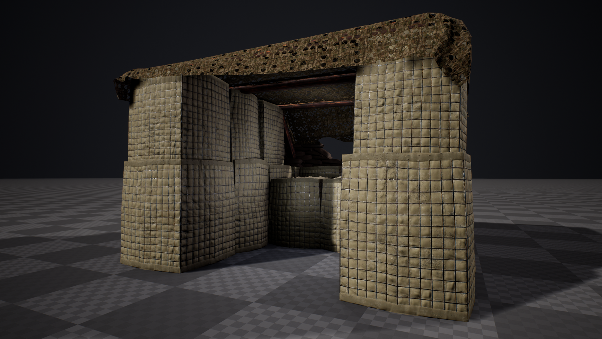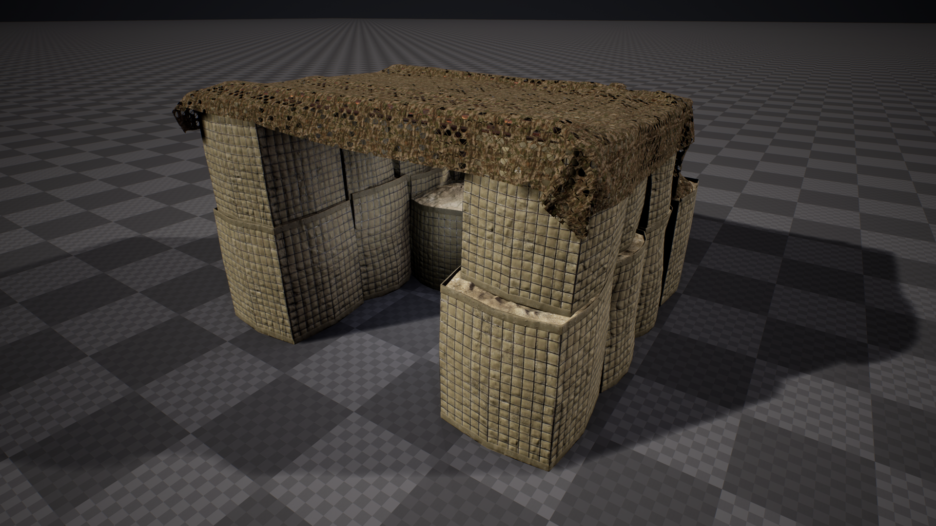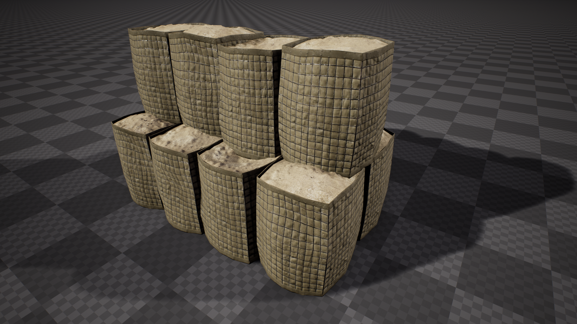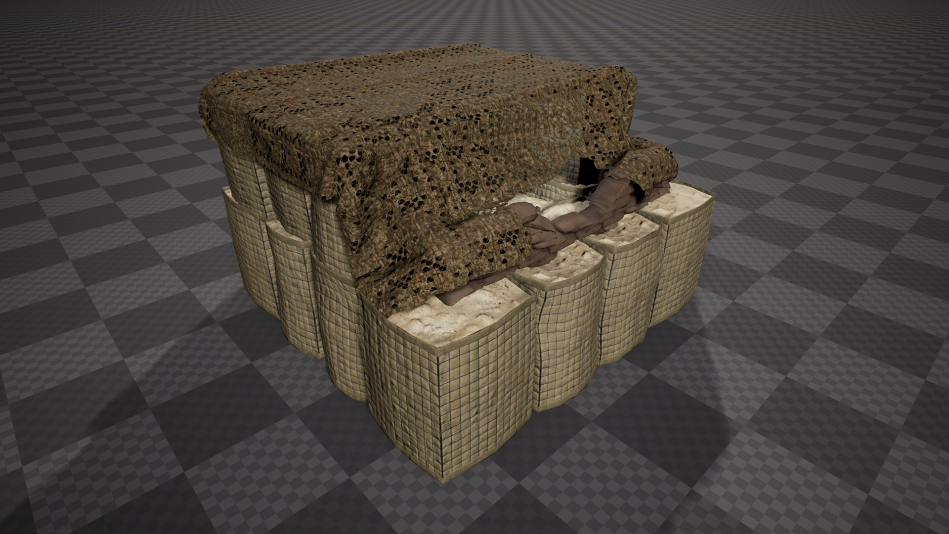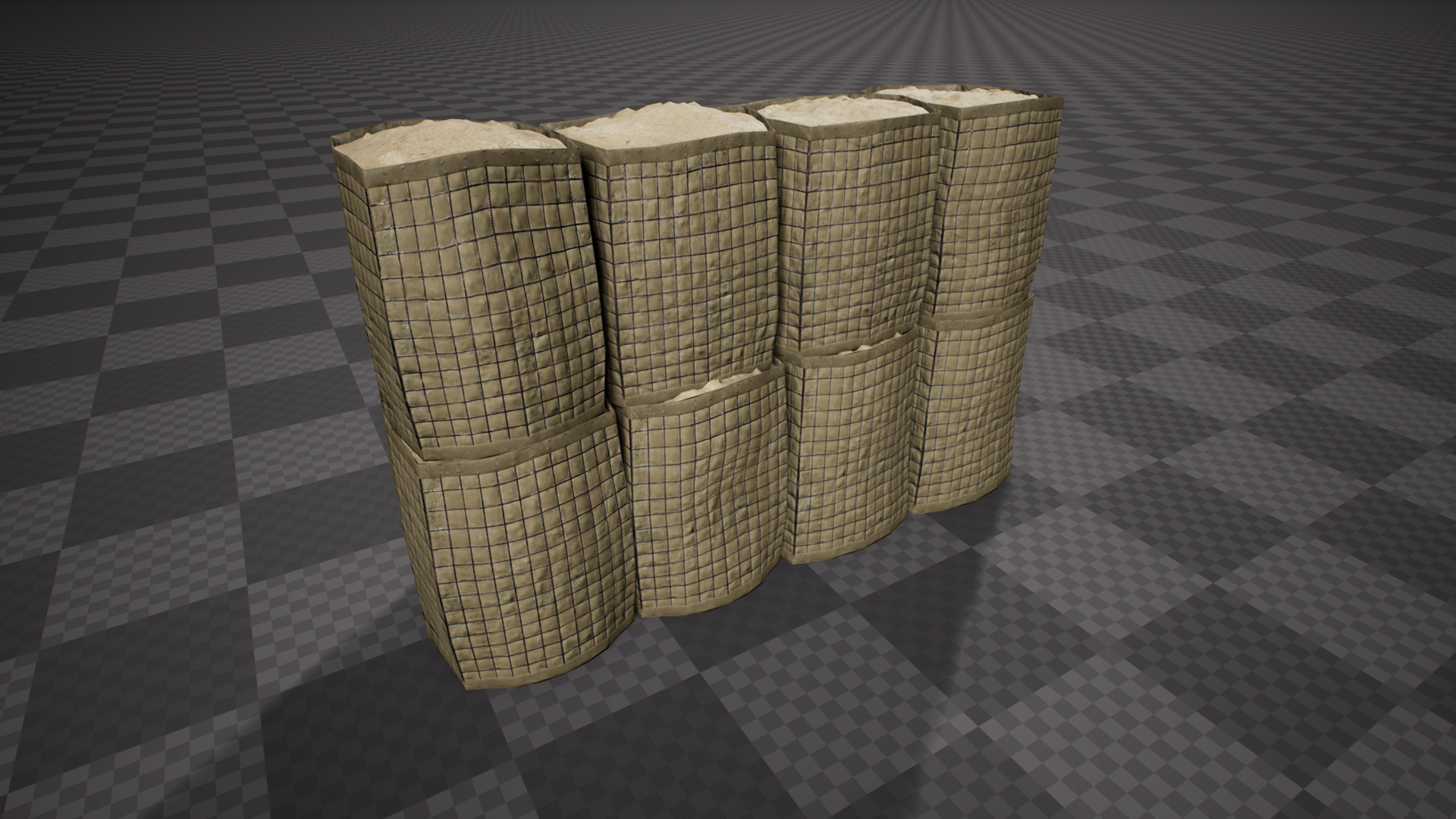 Our 3D modeling team has continued work on creating objects and models that will be used in the FOB buildables feature once that is implemented, including hesco barriers set up in walls and other various arrangements, as well as sandbags: